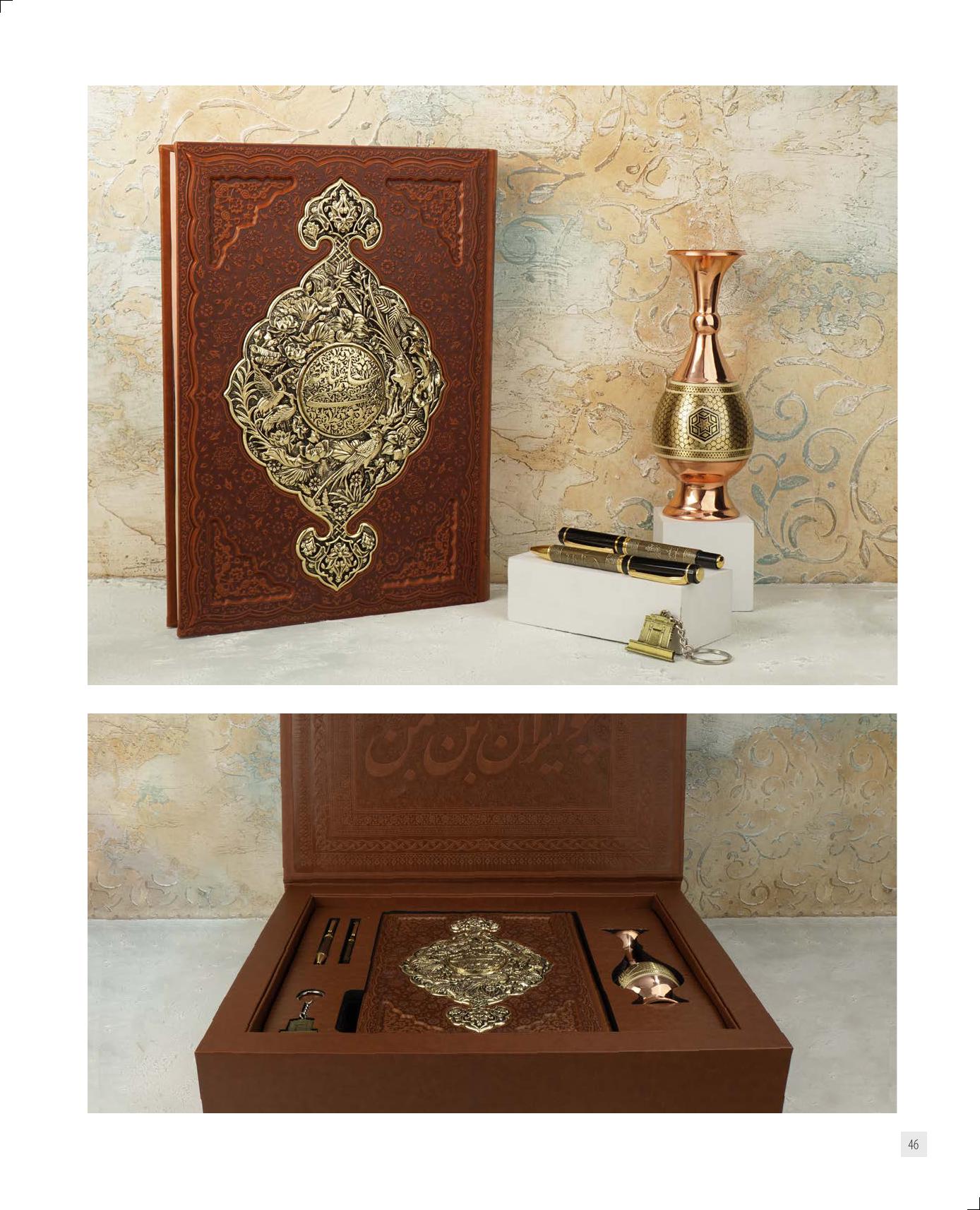 شاهنامه فردوسی، خودکار و رواننویس، جاسوئیچی، گلدان مس و خاتم، به همراه کاور پارچهای و..