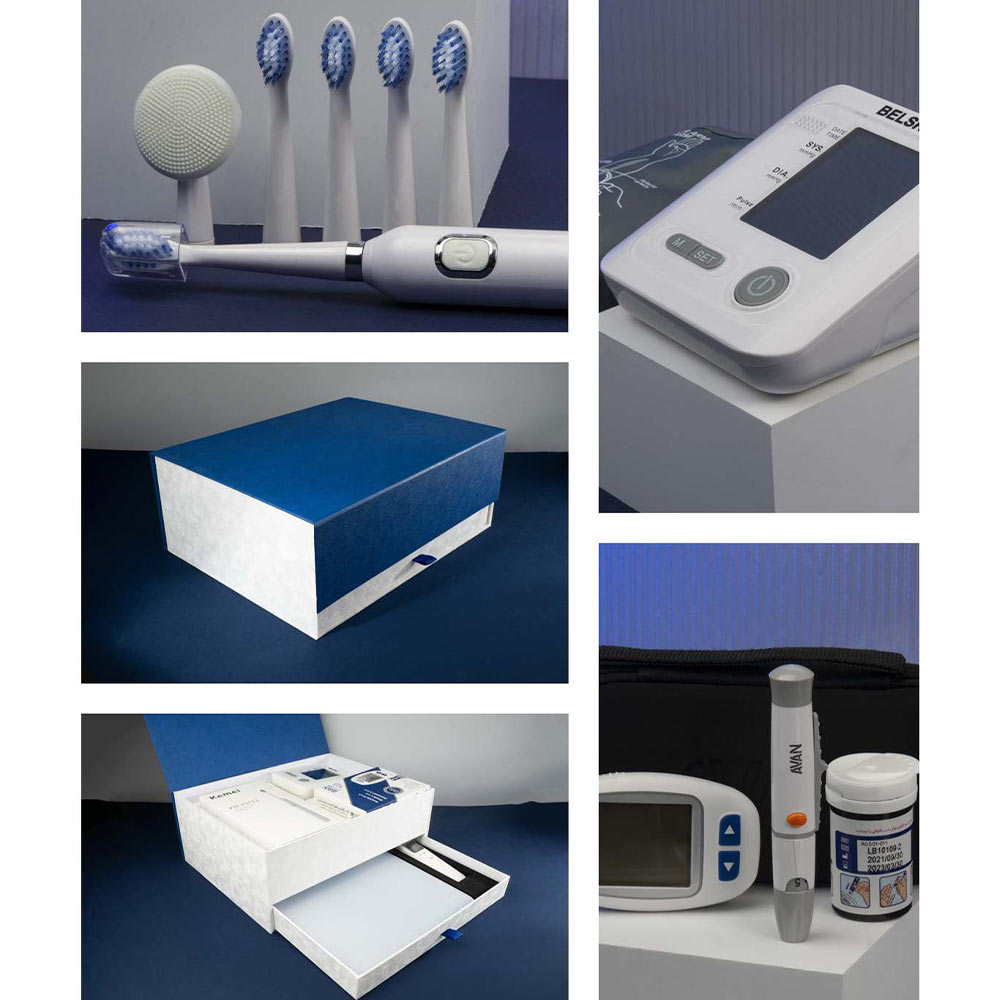 طب سنج دیجیتال، فشارسنج دیجیتال، ترازو دیجیتال، دستگاه تست قند خون، مسواک شارژی،به همراه کاور پارچهای و...
