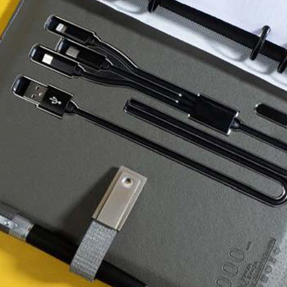 همراه با امنیت حسگر اثر انگشت، داخله 21 فرم کاغذ سفید، پاوربانک 8000(MAH)، فلش 32GB، رواننویس نفیس، به همراه کاور پارچهای و...