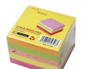 استیک نوت چسبی شامل 100برگ در 5 رنگ گلبهی ، سبز ، نارنجی ، زرد و صورتی میباشد-بیشترین کاربرد در یادداشت های روزانه و یاآوری کار ها میباشد.