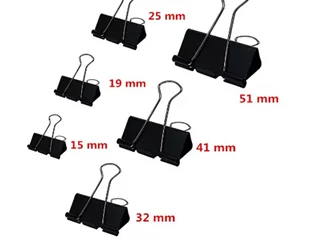 دسته کلیپس کاغذ 15 از استیل ضد زنگ و فک این گیره دوبل مشکی با رنگ الکترواستاتیک پوشیده شده است. عرض فک این محصول 15 ساتی متر می باشد باید دقت کنید که گیره دوبل دارای سایز بندی های مختلف است که هر سایز امکان متصل نمودن تعدادی مشخص از برگه کاغذ را دارد. پس زمان خرید به سایز و مشخصات آن توجه نمایید. اگر برای تعداد زیادی برگه کلیپس کوچکی را انتخاب نمایید. بعد از گذشت زمان اندک این محصول کارایی خود را از دست می دهد. به اصطلاح فک گیره باز شده و فرم خود را از دست می هد. و اگر تعداد برگه کمی را داشته و گیره بزرگی را انتخاب نمایید، امکان سر خوردن و گم شدن برگه های شما بسیار زیاد است.